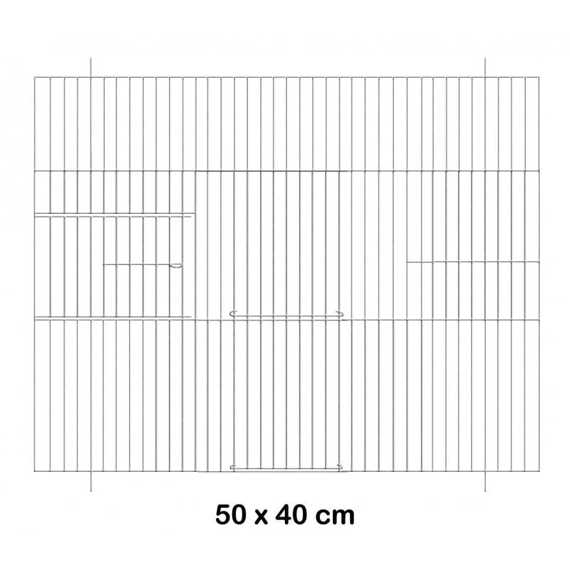 - Façade de cage chromée pour la construction de batteries pour becs droits et perruches comprenant 1 porte à guillotine, 1 portes latérale pour le nid extérieur ou la baignoire.