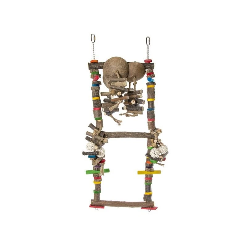 Jouet Perche En Bois Double Avec échelle De Noix De Coco